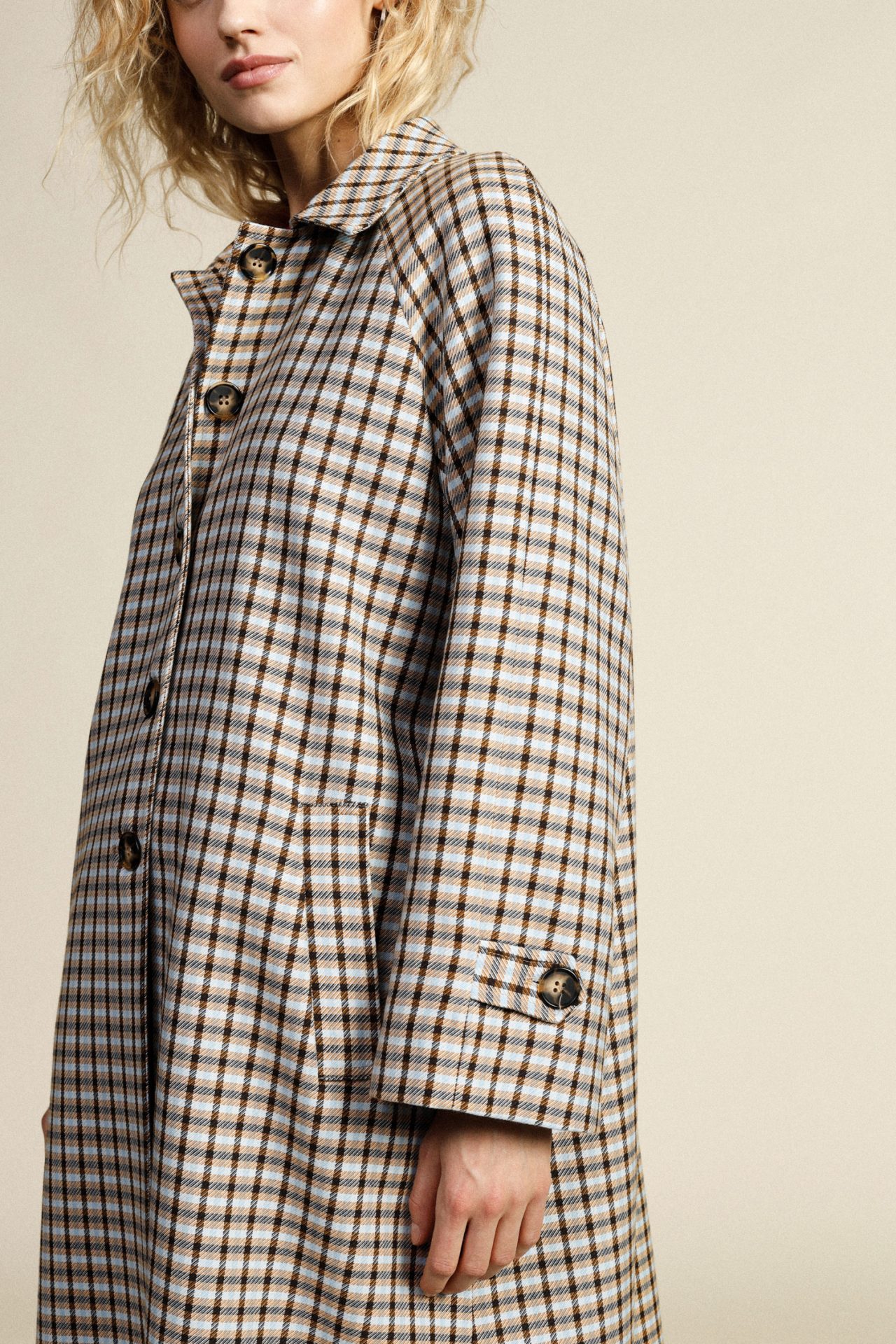 Un clásico reinterpretado con carácter. Este abrigo de corte amplio y estampado de cuadros aporta un aire distintivo y actual a cualquier look. Su silueta recta estiliza sin esfuerzo, mientras que las mangas sueltas refuerzan esa sensación de comodidad y movimiento.