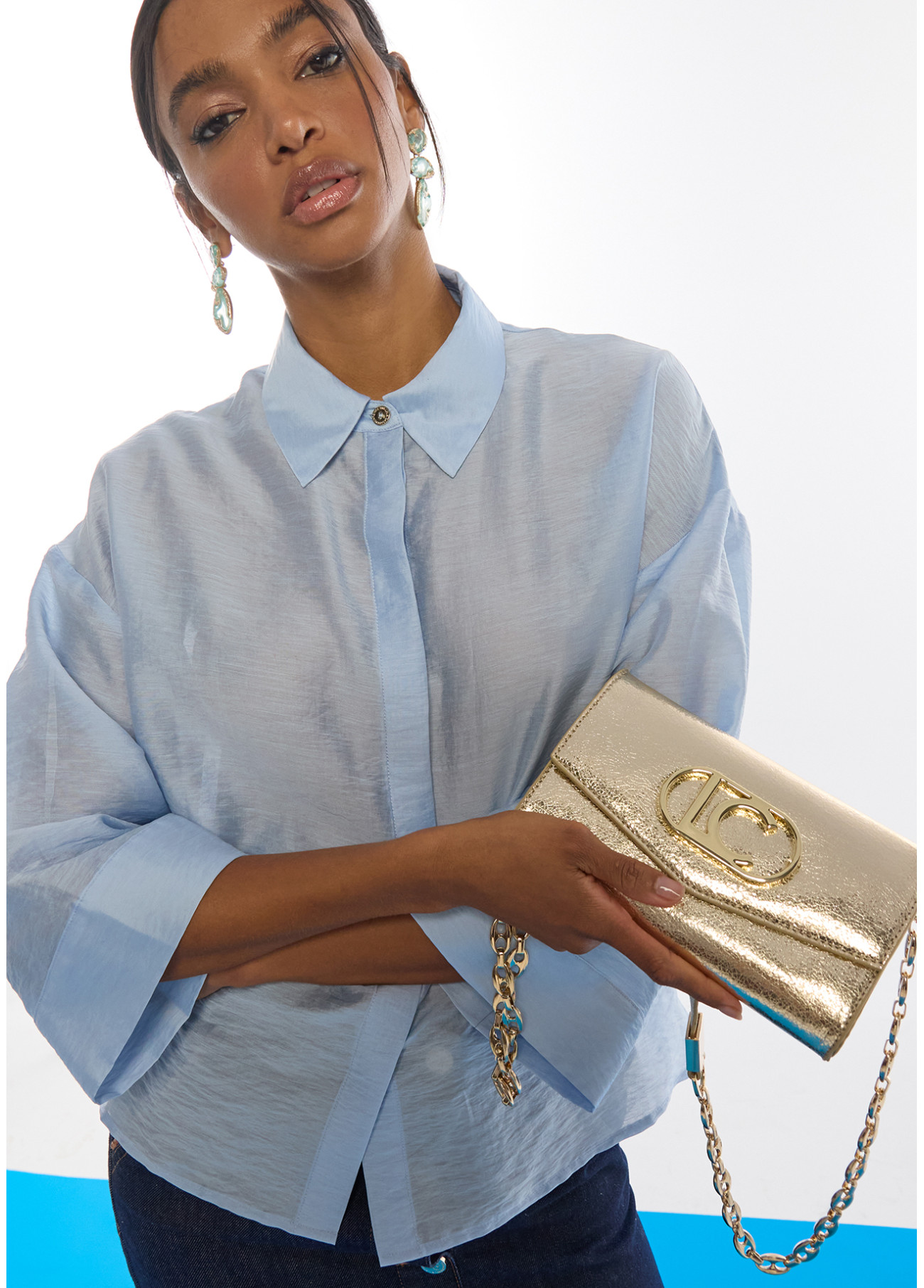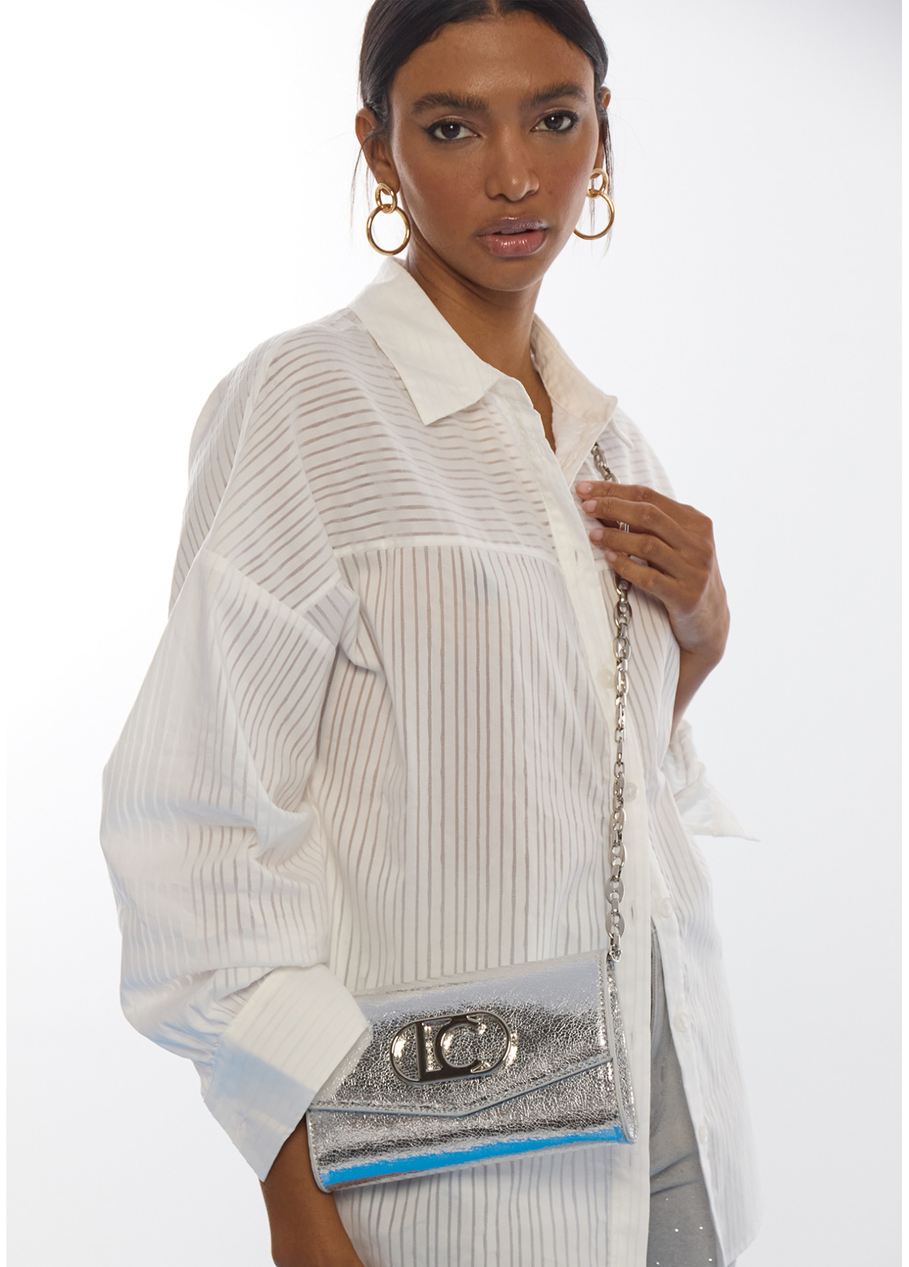 Brillo y elegancia en formato compacto. Esta bandolera metalizada es el complemento perfecto para elevar cualquier estilismo de fiesta, aportando luz y un toque sofisticado.
