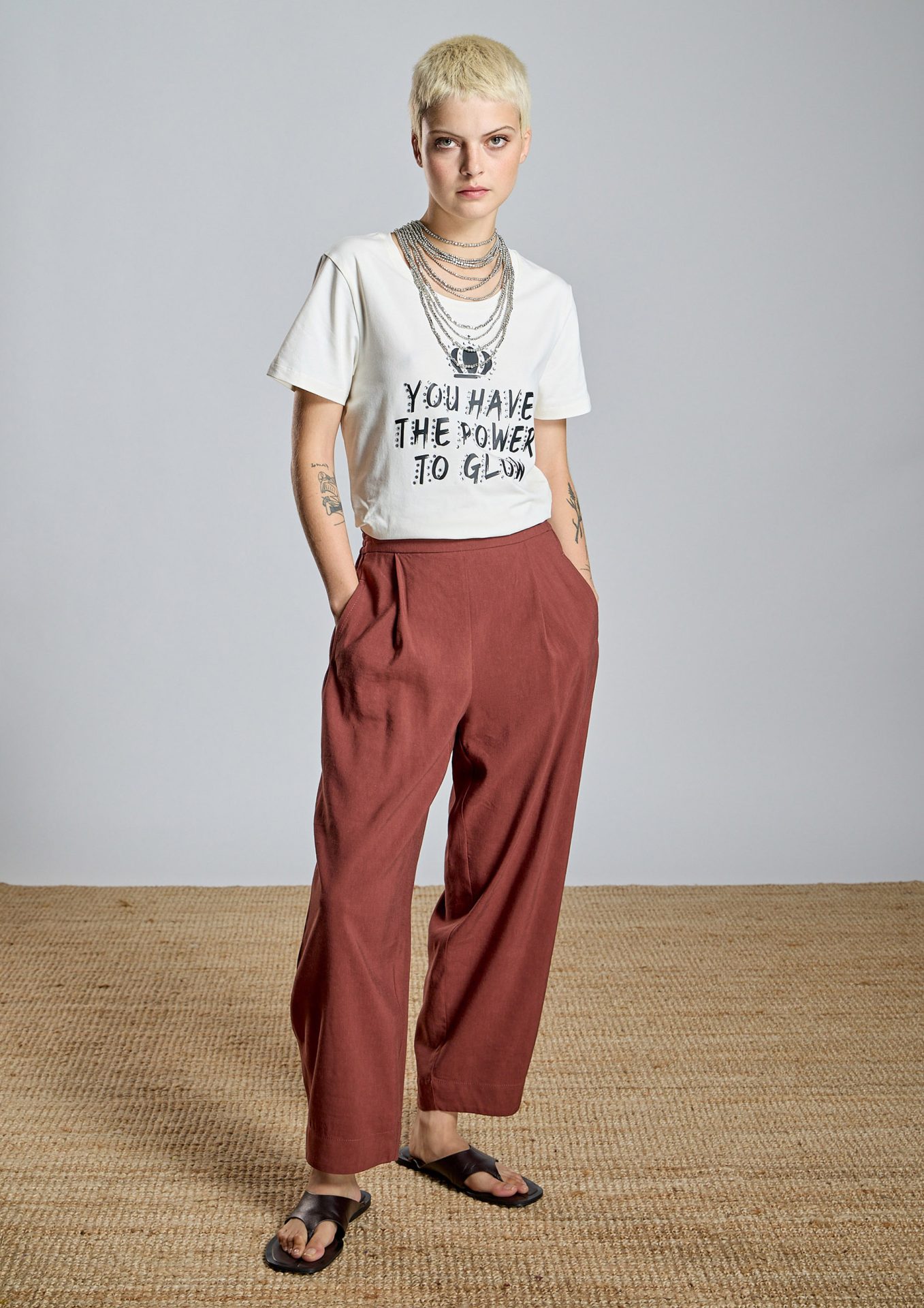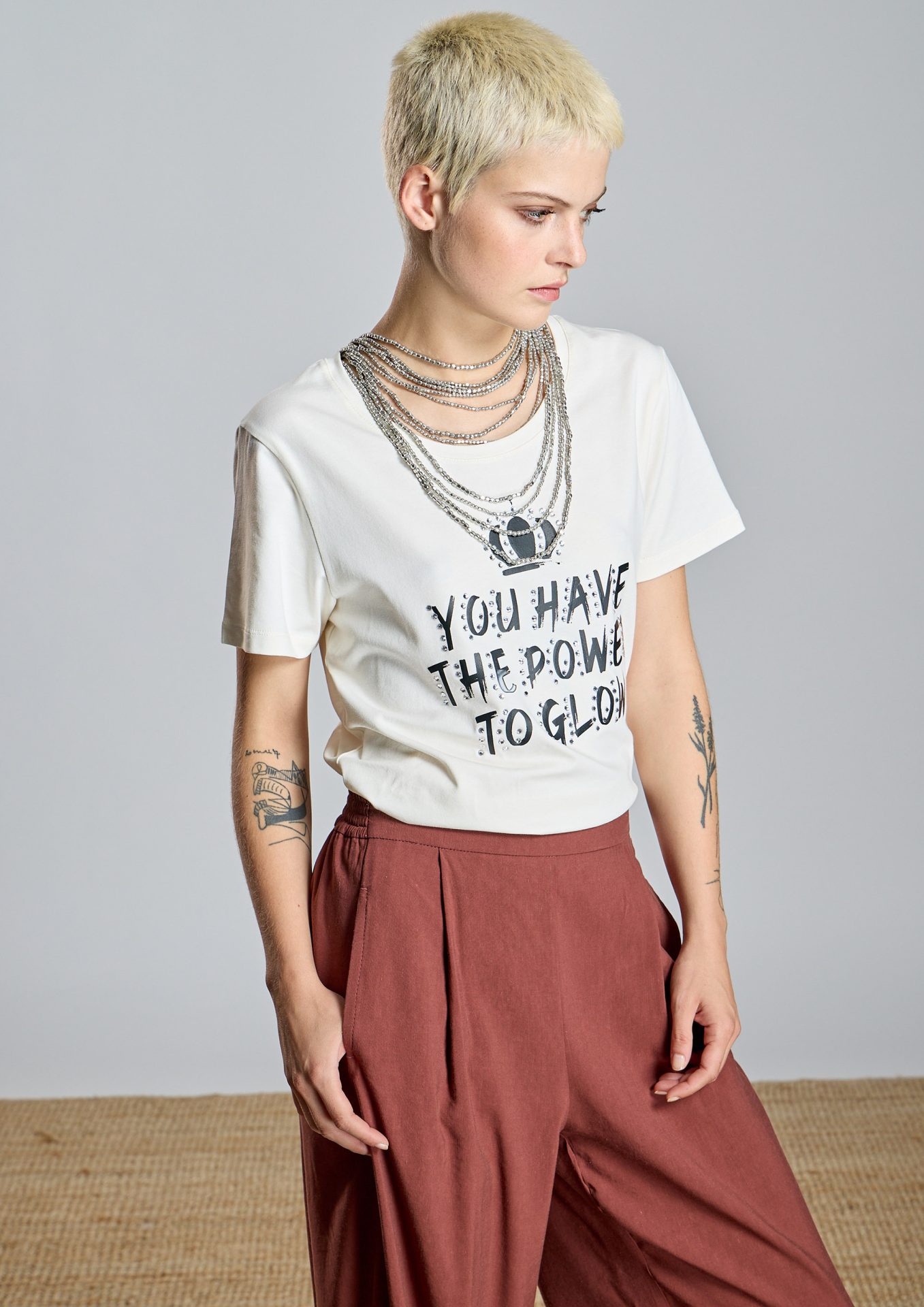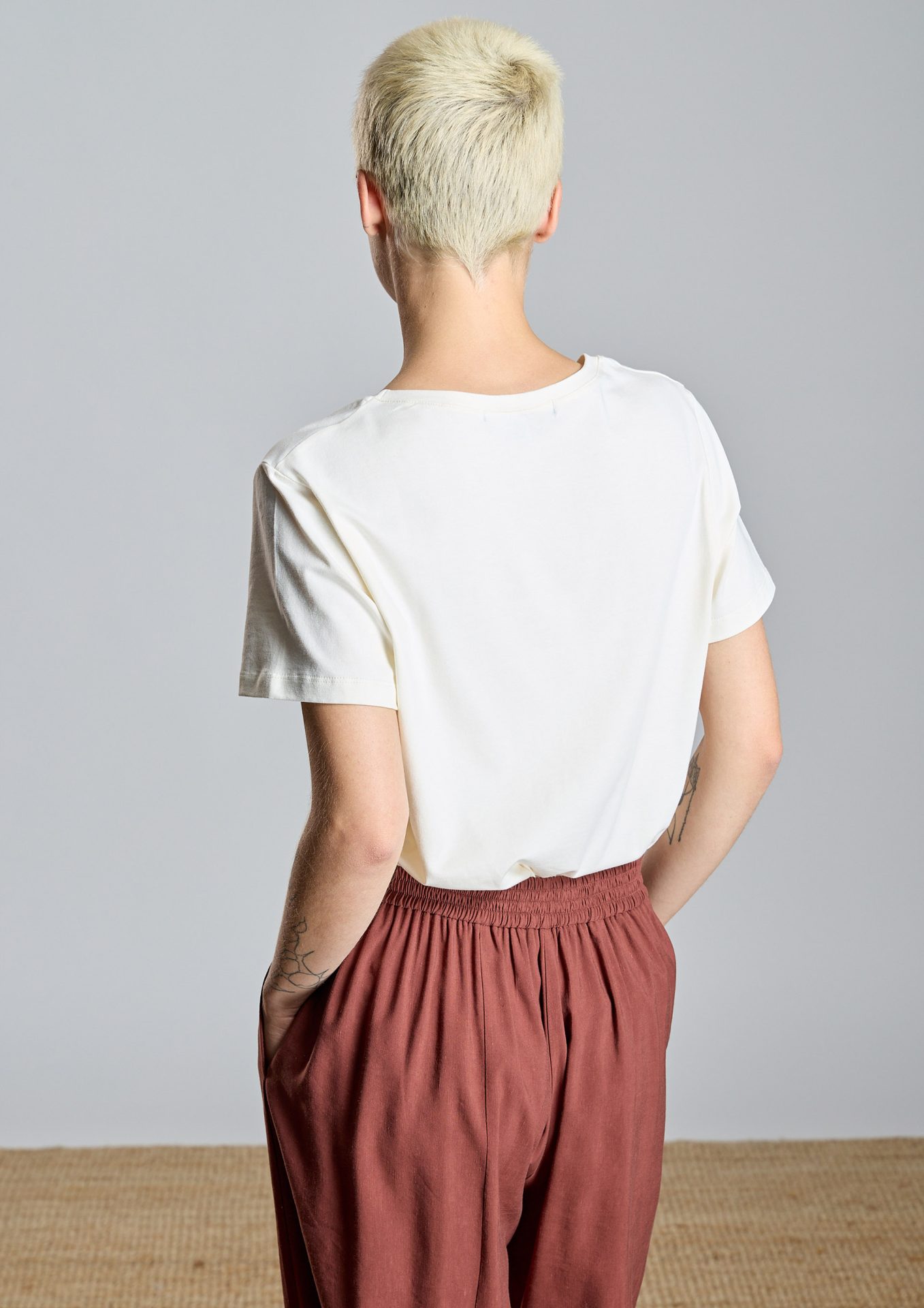 Confeccionada en tejido de punto de algodón elástico en color crudo, es una prenda suave, práctica y fácil de combinar en el día a día. ✨