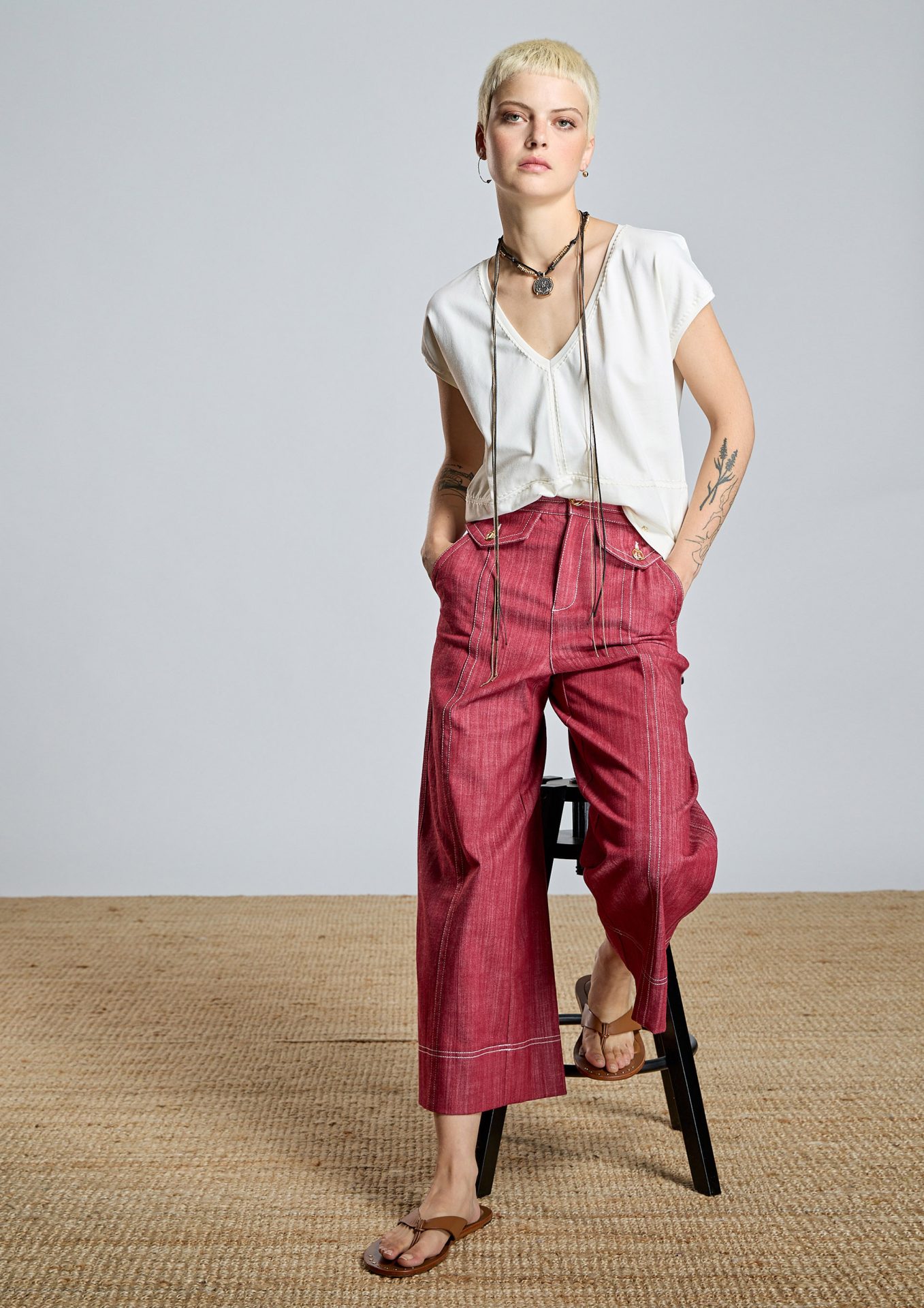 Su largo cropped y volumen equilibrado estilizan la figura y permiten jugar con calzado: desde botines hasta bailarinas o sneakers minimal. Una pieza versátil, con personalidad y perfecta para construir estilismos relajados con intención.