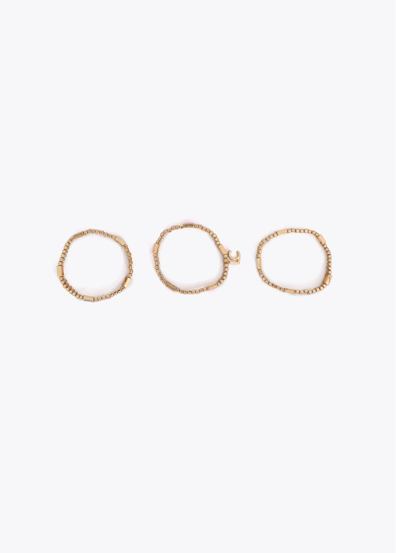 Set de pulseras elásticas en metal dorado con detalles en tonos rojo, blanco y negro que aportan un toque elegante y moderno.