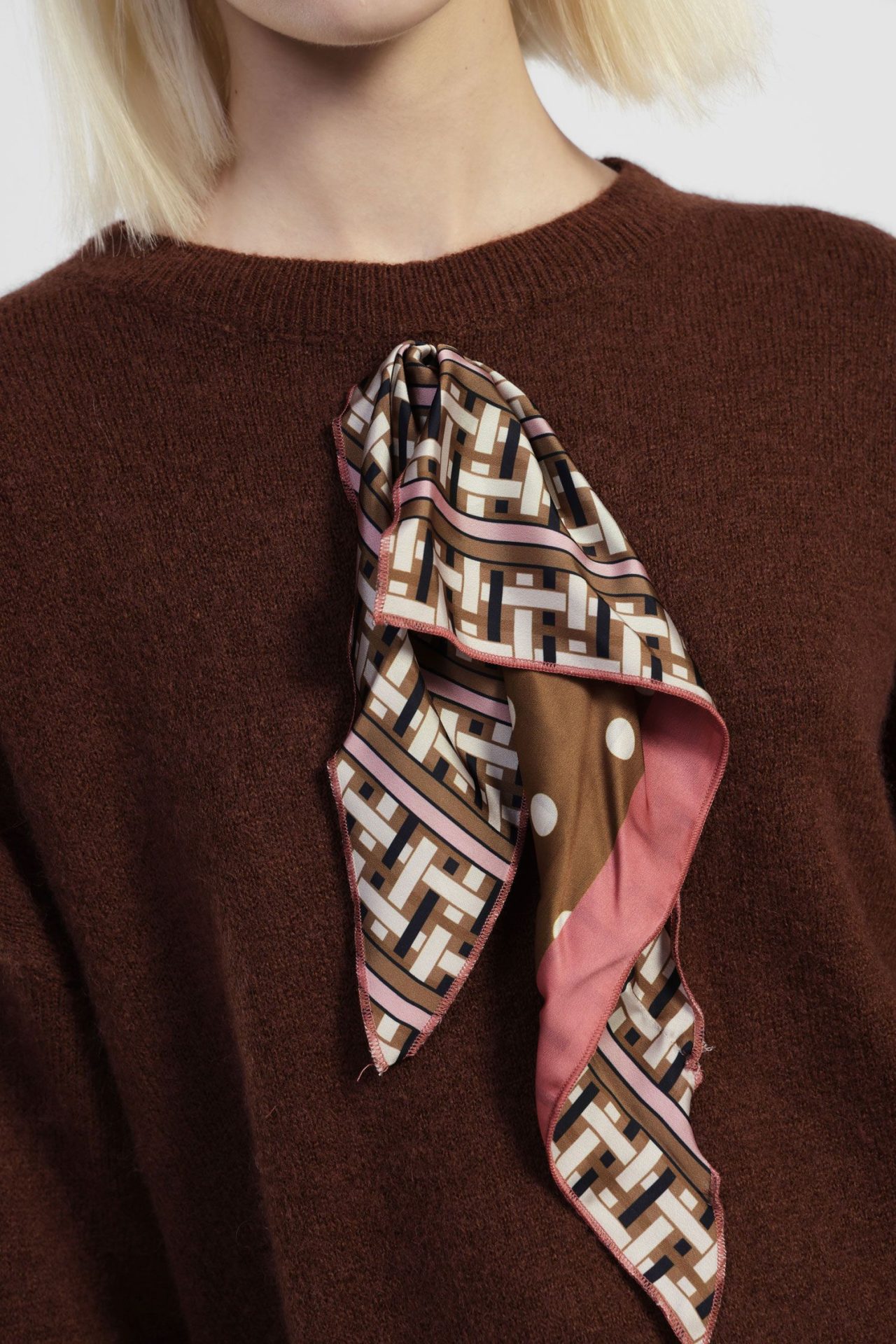 Jersey con pañuelo decorativo en la parte frontal. Diseño fluido, femenino y versátil para un estilo elegante y moderno.